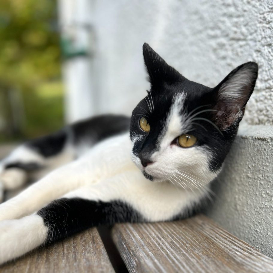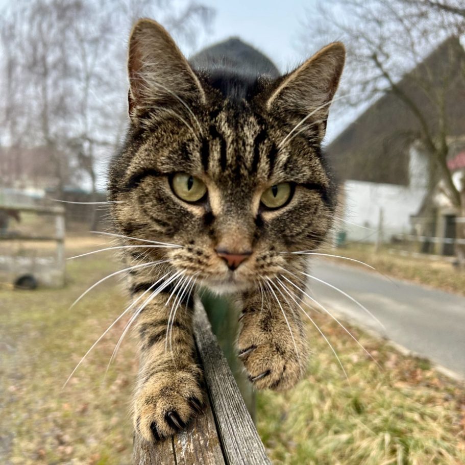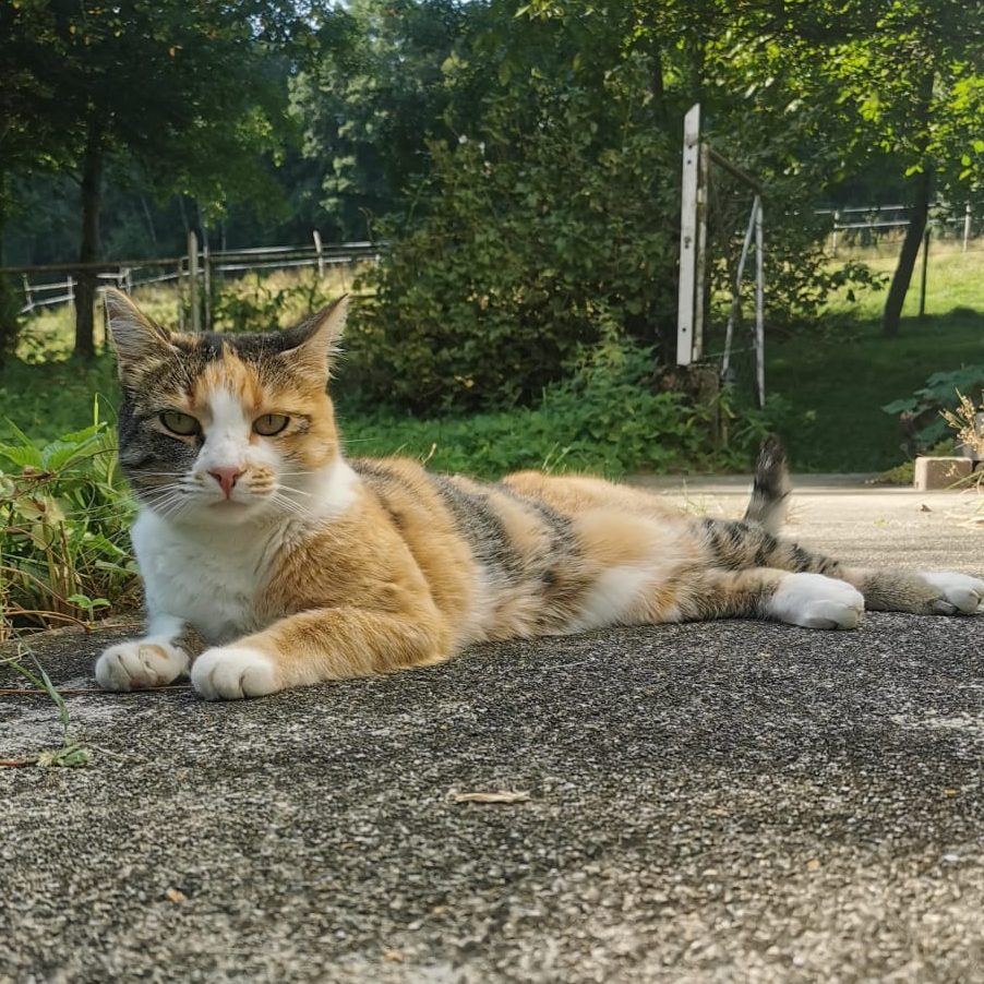 Mimi ist die sanfte Beobachterin aus dem Hintergrund. Man sieht sie selten, aber sie ist immer da. Wie ein kleiner „Geist“ wacht sie über den Hof, hat alles im Blick und sorgt stillschweigend dafür, dass hier alles seine Ordnung hat.